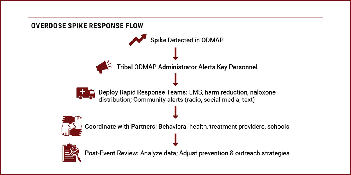 The USET Office of Tribal Public Health is offering technical assistance and guidance to any Nashville Area Indian Health Service Tribal Nation or Urban Indian Health Organization interested in ODMAP, including support with enrollment, training, and using ODMAP data to strengthen overdose response efforts.